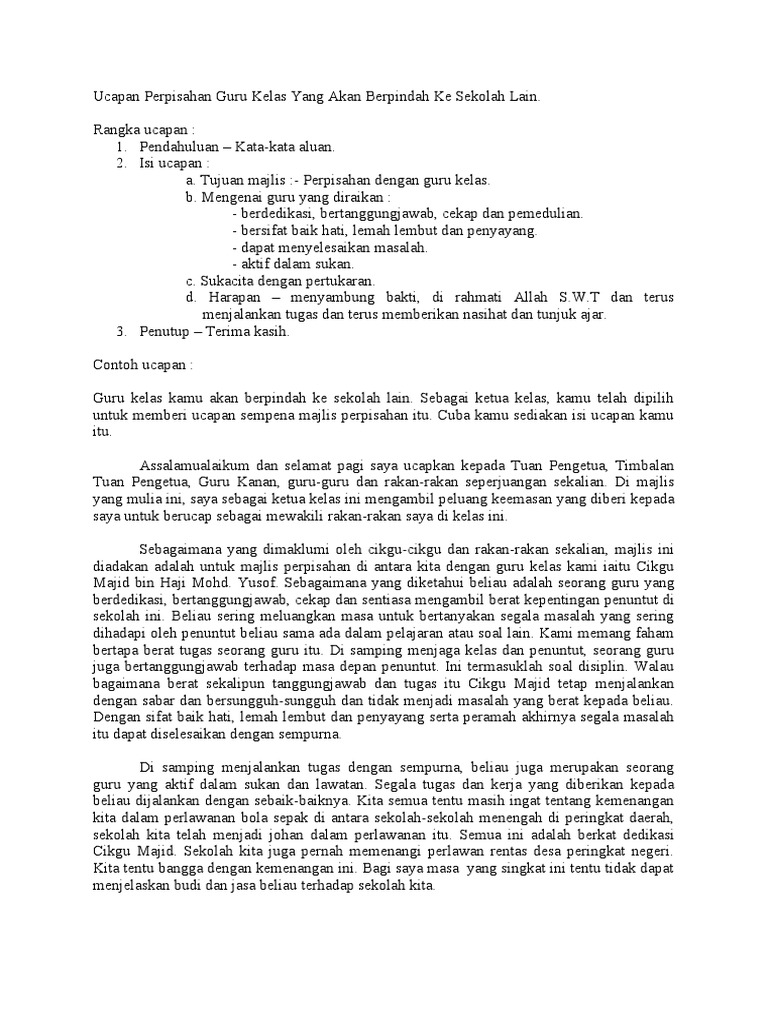 Ucapan An Guru Kelas Yang Akan Berpindah Ke Sekolah Lain Pdf